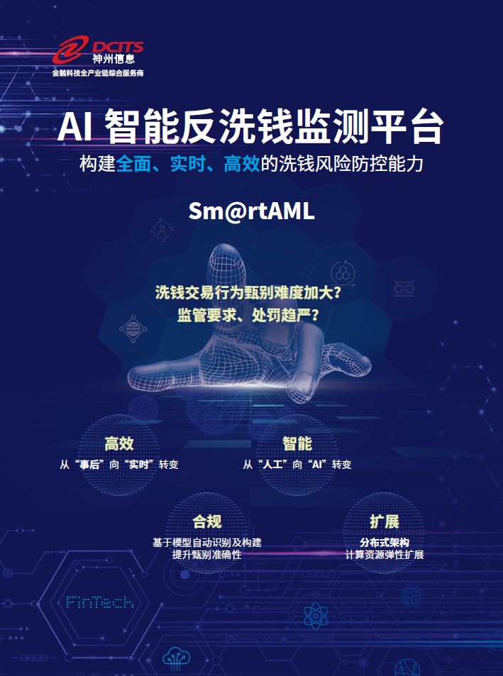 神州信息AI智能反洗钱监测平台,结合大数据、知识图谱、人工智能等先进技术,实现了智能KYC审查、实时名单客户交易拦截。同时通过机器学习算法自动构建可疑洗钱交易模型,代替传统基于规则和人工判断的反洗钱工作模式,极大地提升了可疑洗钱交易上报的及时性、准确性,降低了金融机构反洗钱工作的合规成本。